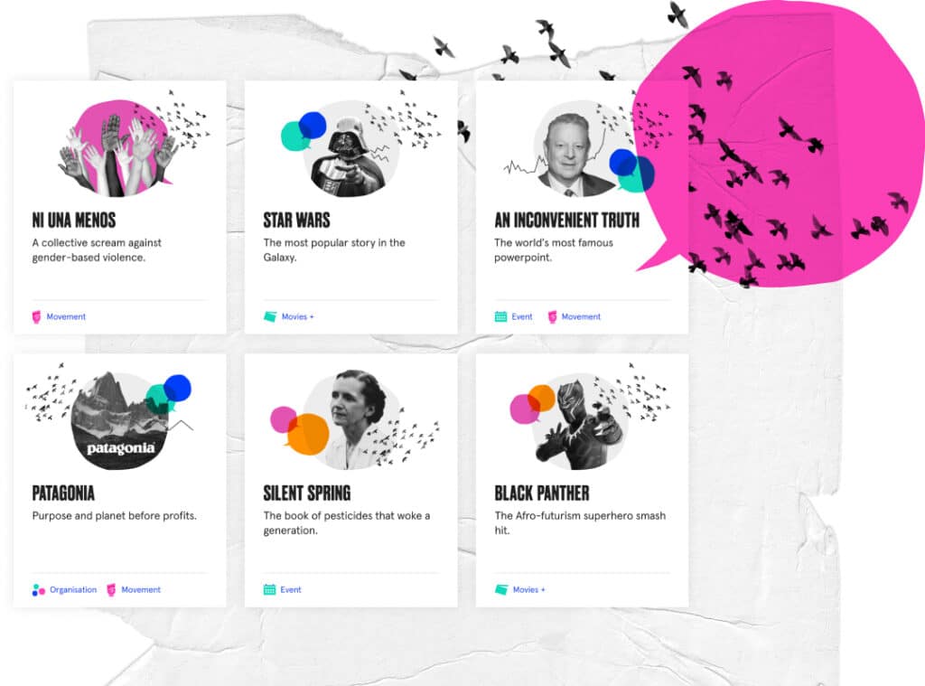 Learn from change-making movements and pioneers, challenger brands and famous movies. Each story of collective action is decoded using the Lean Story Canvas.